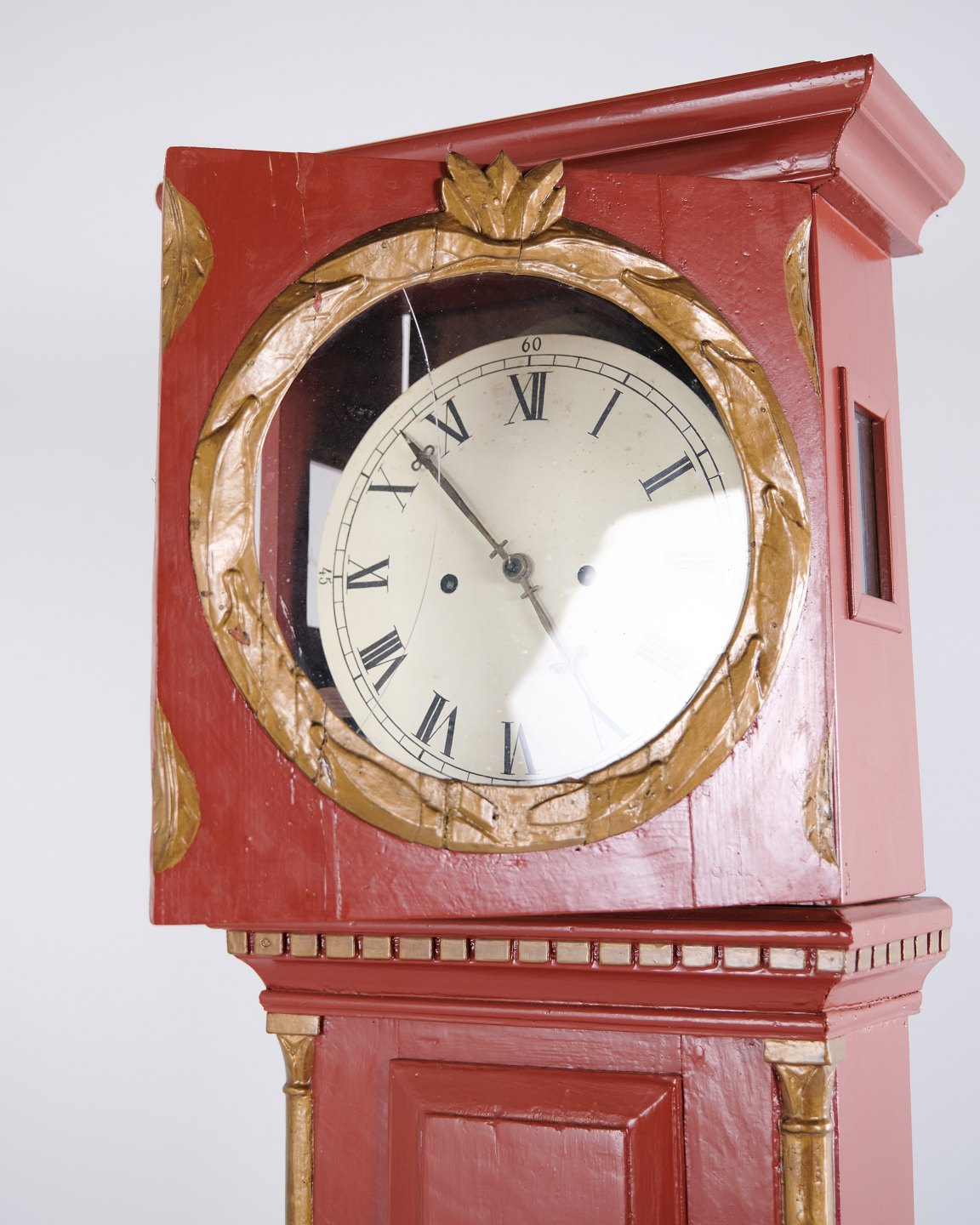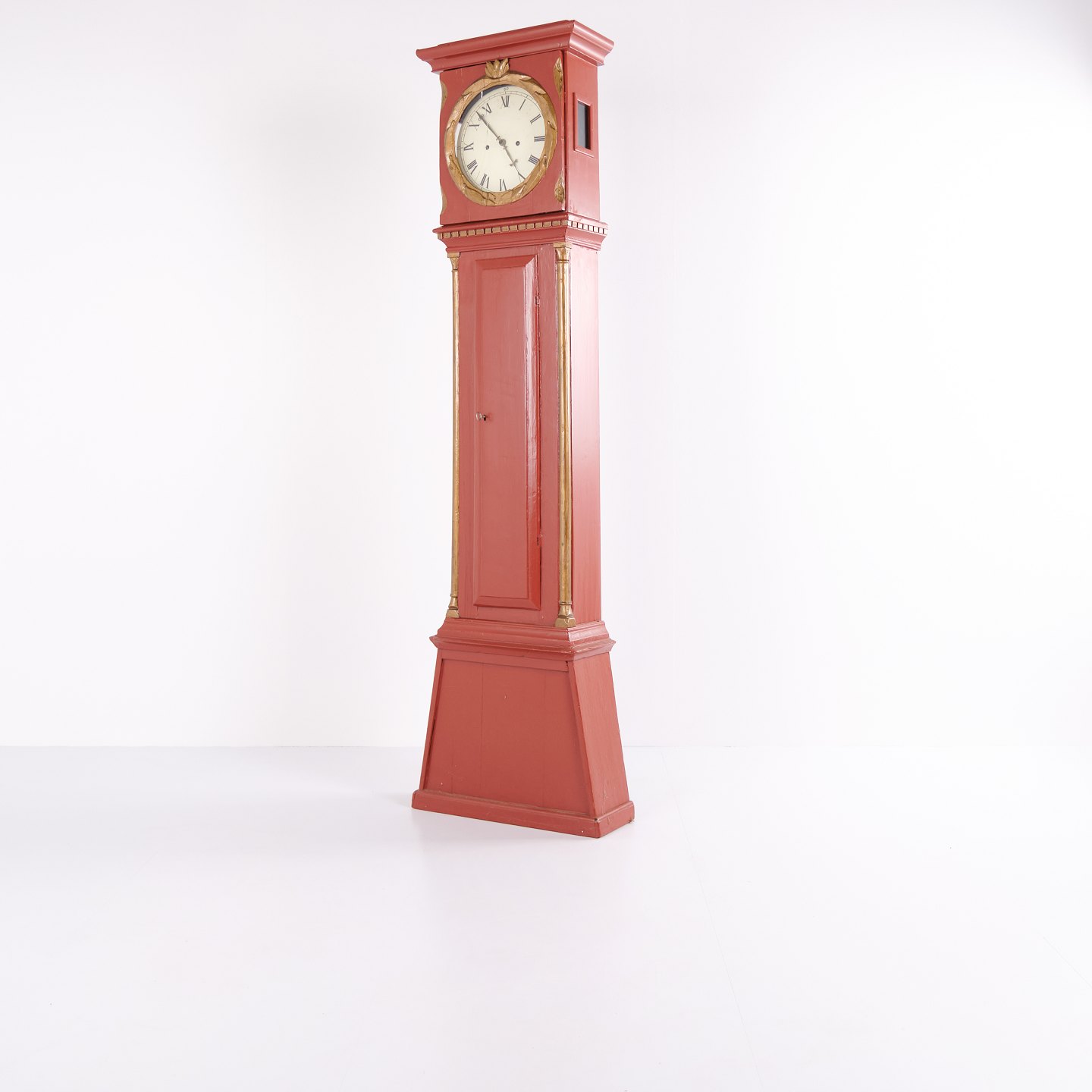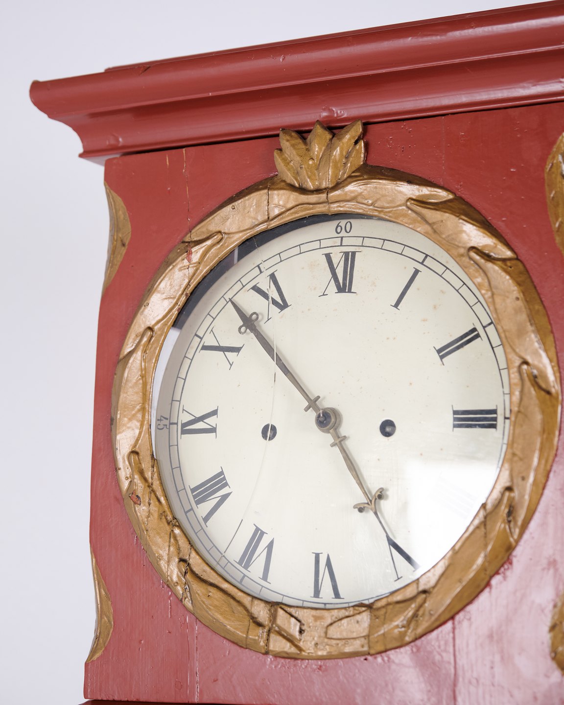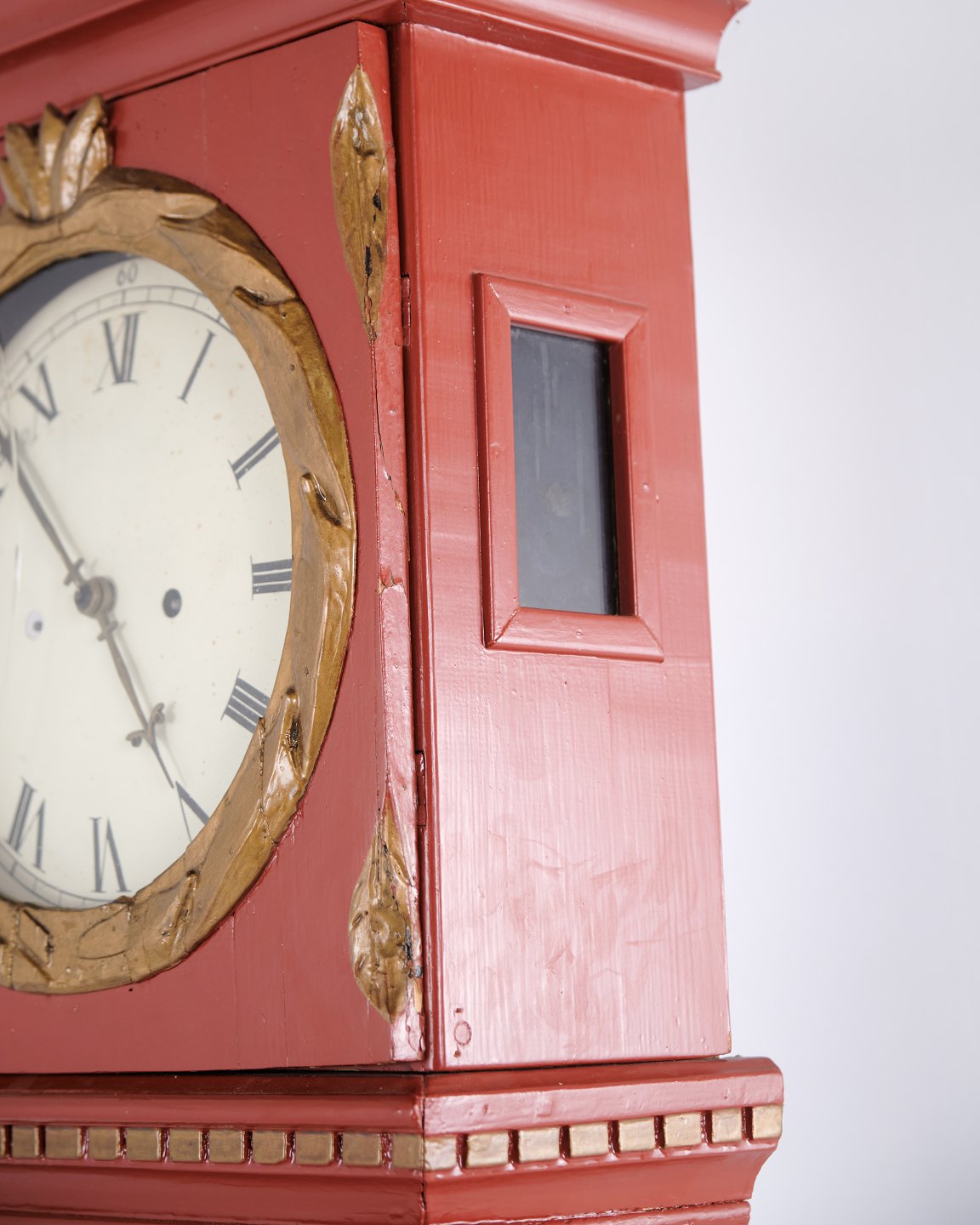 Longcase Clock / Bornholm Clock – Red Painted – Carved Details – c. 1820s