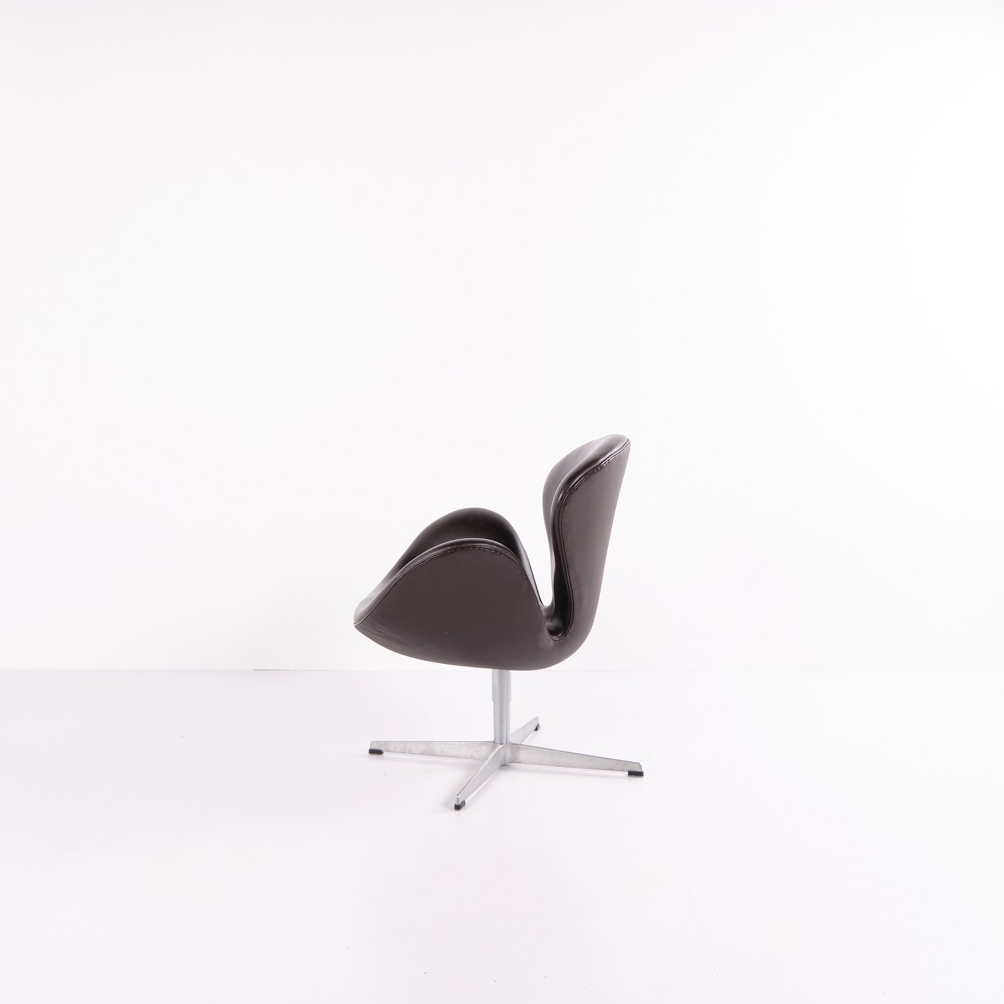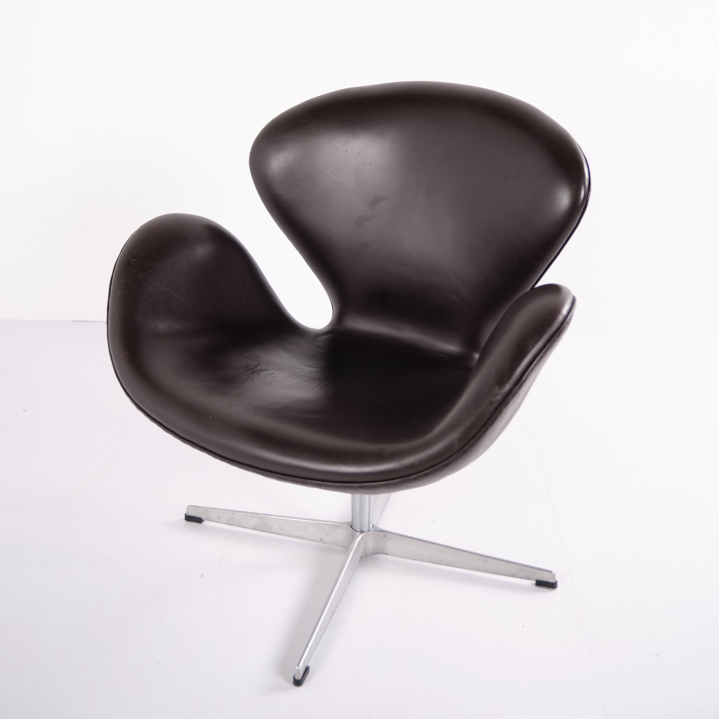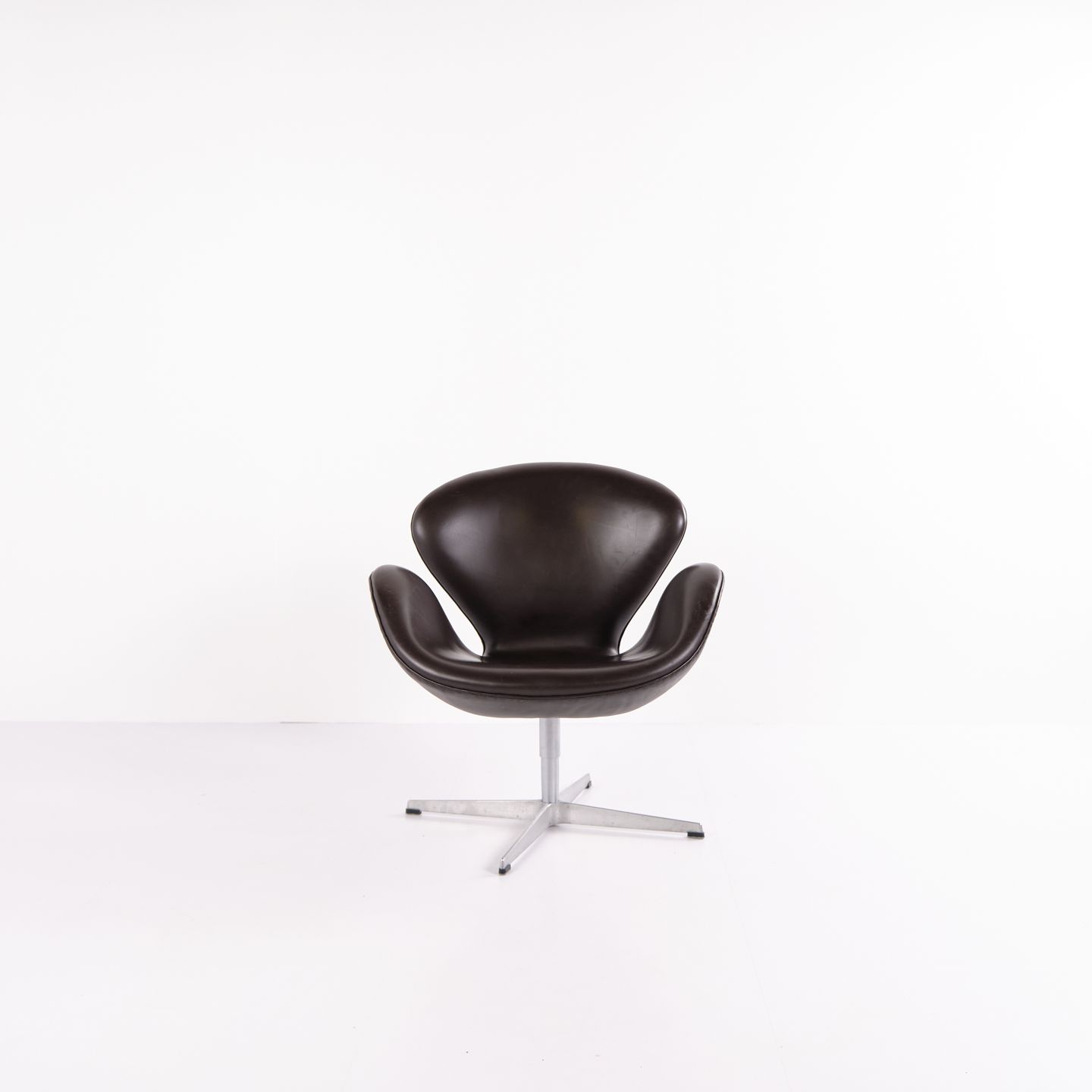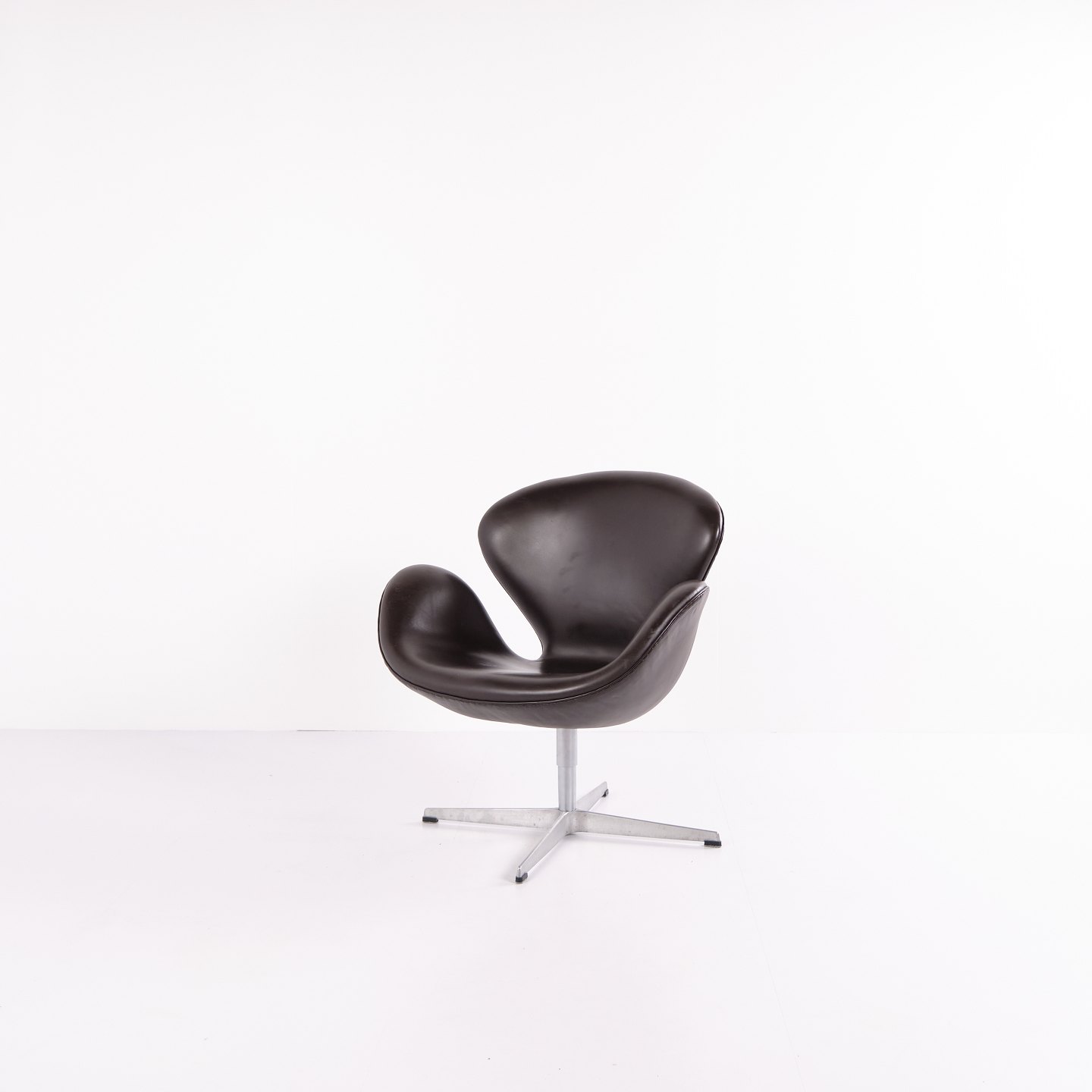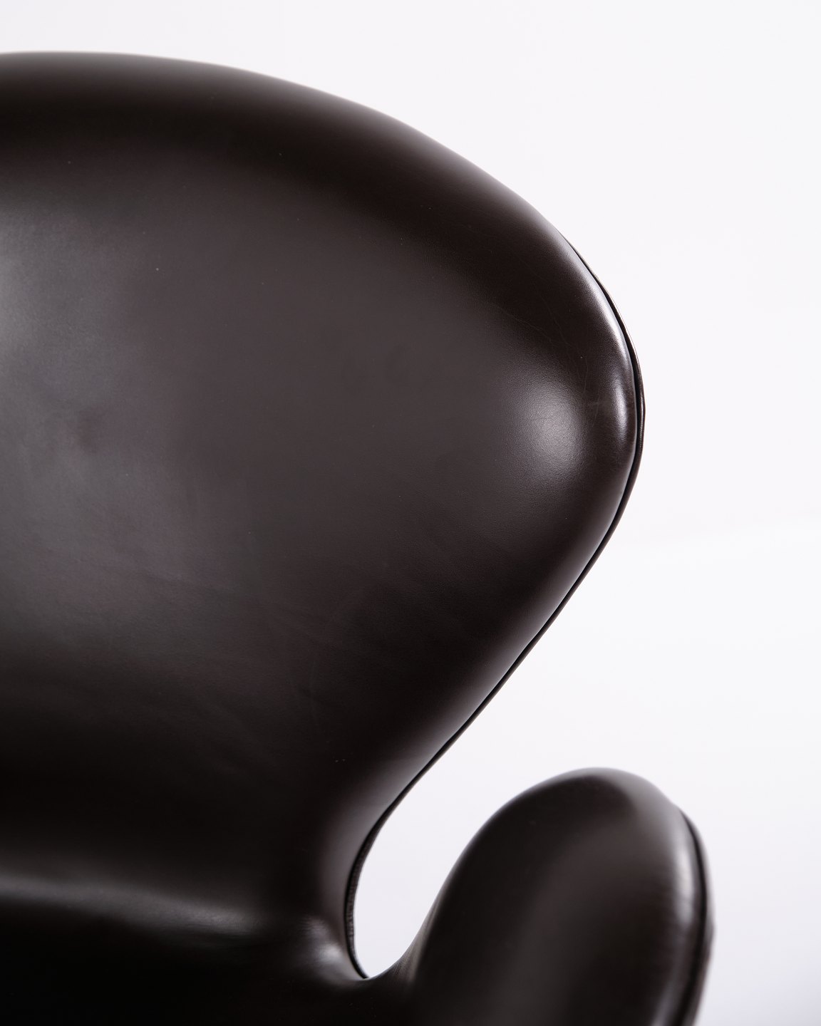 Swan armchair model 3320 by Arne Jacobsen for Fritz Hansen. Brown leather. Produced 2007. Iconic Danish design classic.