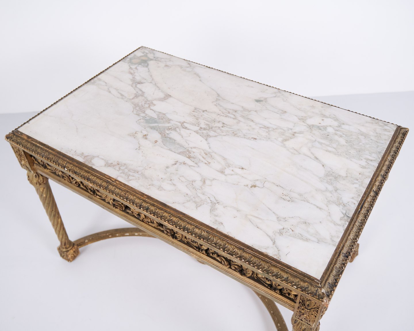 Antique Salon Table With Marble Top – Detailed Carvings – Gilded Wood – Louis XVI Style – 1850s