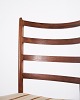 N.O. Møller dining chairs in rosewood with striped upholstery from the 1960s. Designed by J.L. Møllers Møbelfabrik.