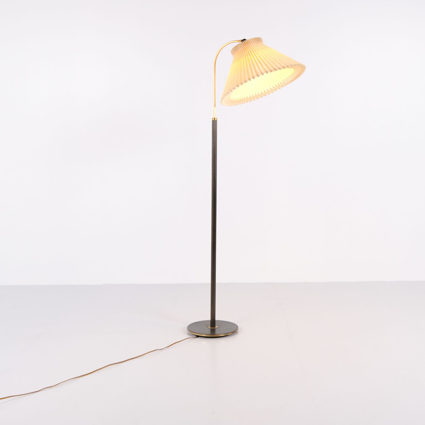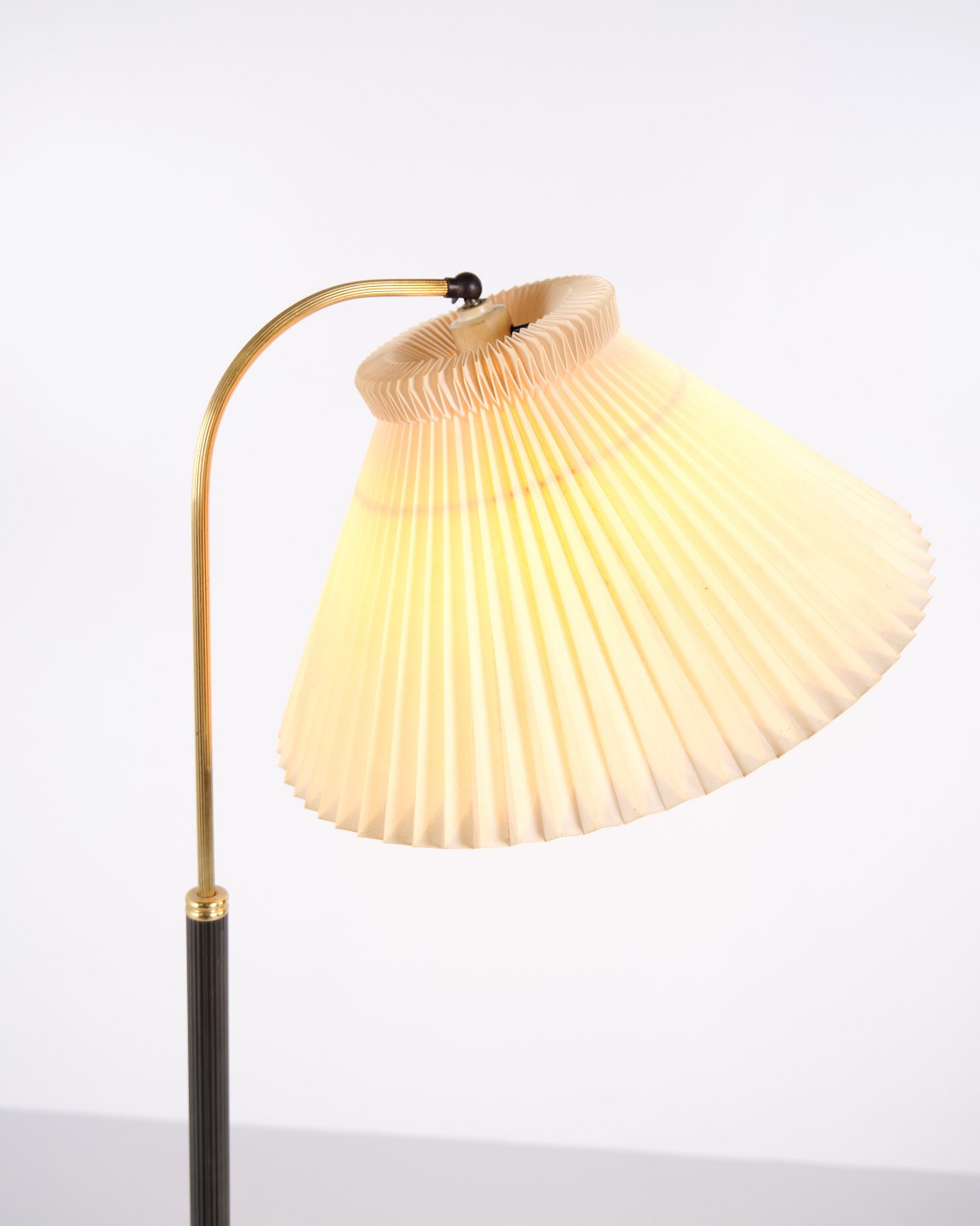 Le Klint floor lamp from the 1960s in brass with pleated shade. Vintage Le Klint standing lamp Danish lighting.