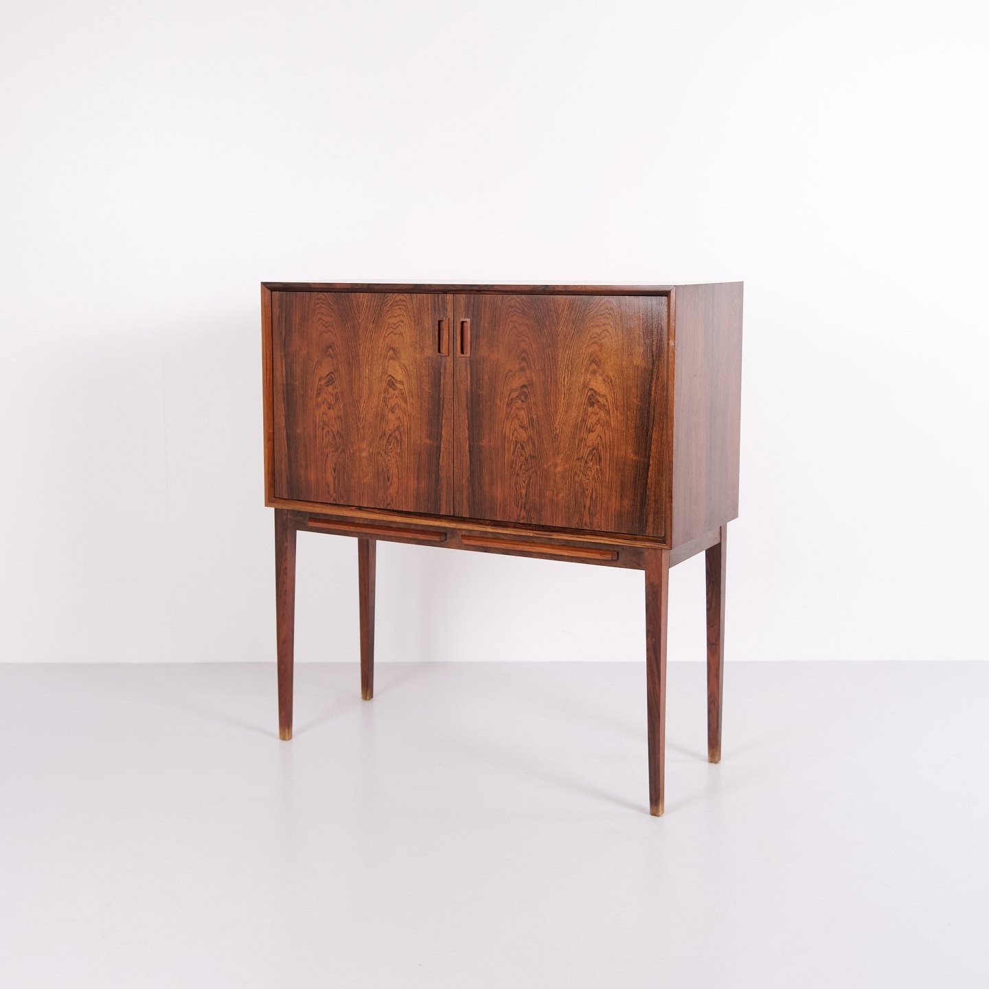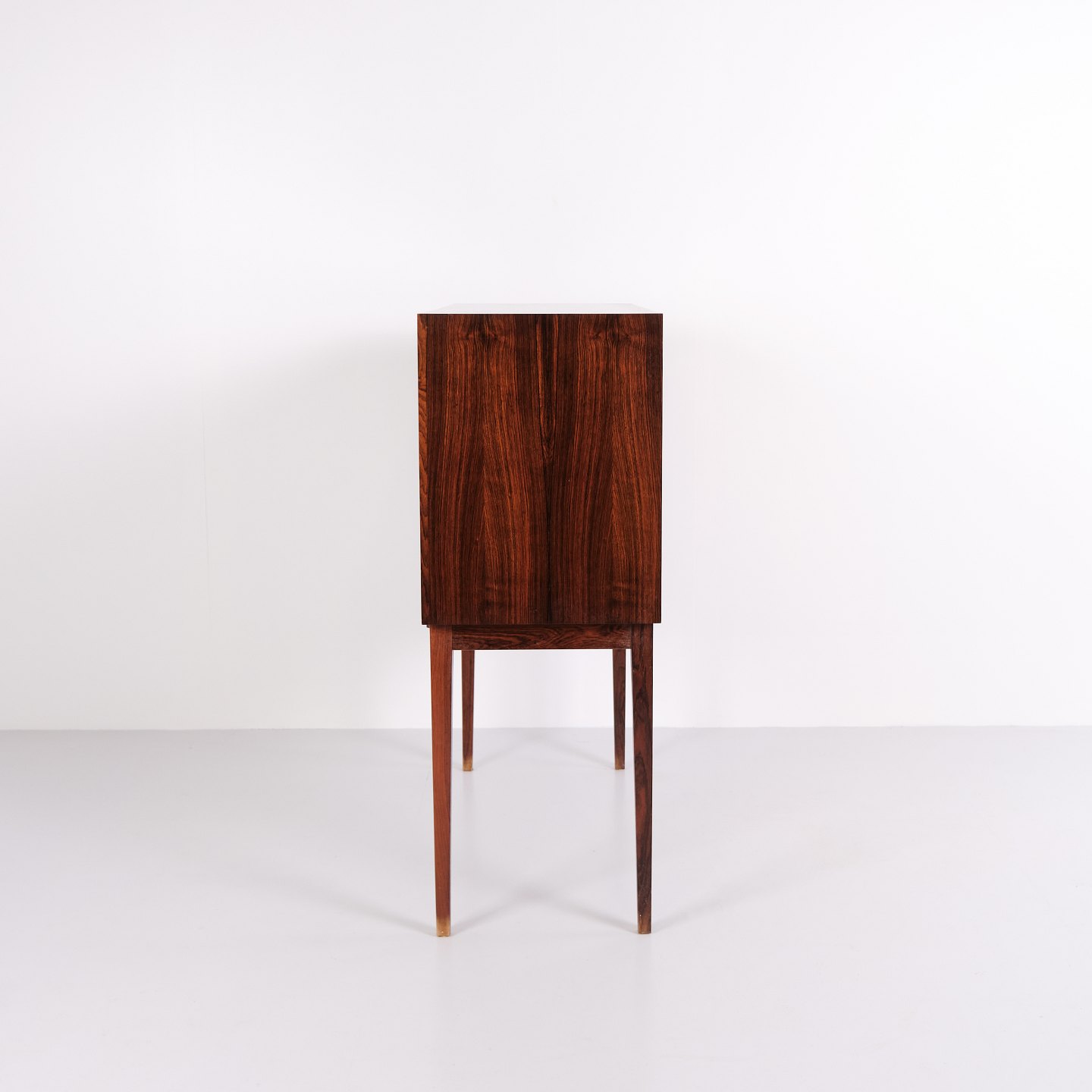 Schrank, entworfen von Johannes Sorth und hergestellt bei Bornholm Møbelfabrik in Dänemark in der Mitte des 20. Jahrhunderts. Das Möbel ist aus Palisander gefertigt und spiegelt die klaren Linien und die hohe handwerkliche Qualität wider, die typisch für das dänische Möbeldesign dieser Zeit sind.