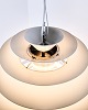 Iconic pendant, PH Louvre (formerly called PH Kugle), designed by Poul Henningsen in 1957 for the Adventist Church in Skodsborg. The lamp is constructed of 13 lamellas mounted on an internal structure, ensuring a soft and glare-free light. The spherical design creates an even light distribution and a sculptural expression.