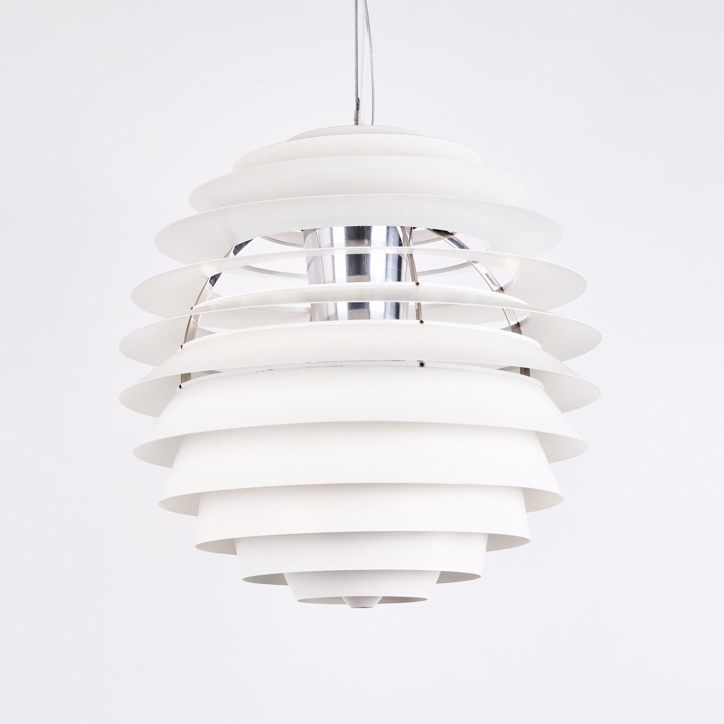 PH Louvre is a further development of Henningsen’s earlier work, including Spiralen from 1942, and the name refers to the lamella structure, where the light is elegantly filtered through the shades.