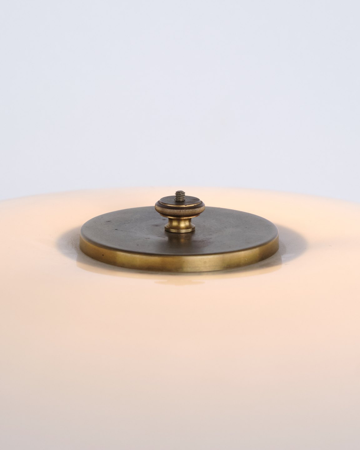 — Material: Burnished brass and white opal glass