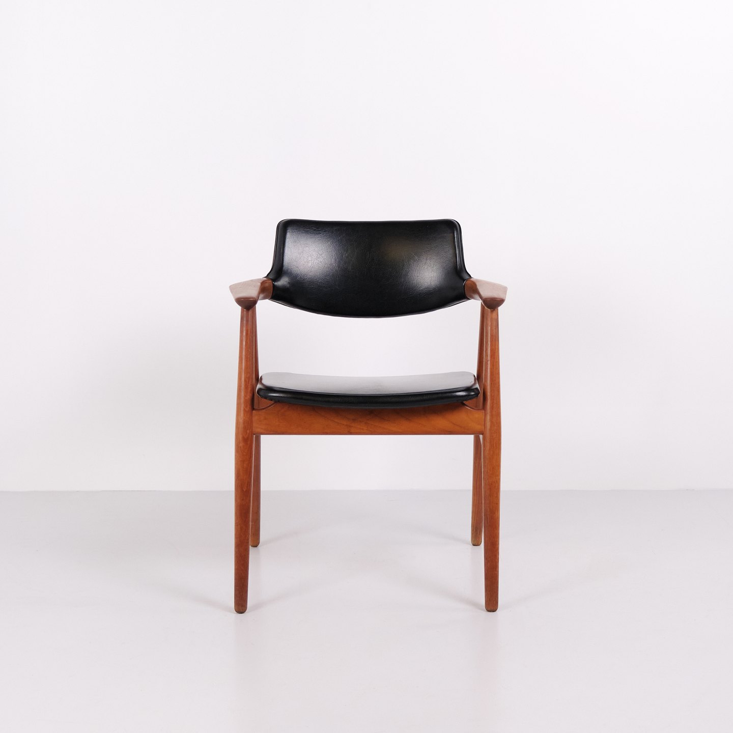 Set of 6 GM11 dining chairs designed by Svend Aage Eriksen for Glostrup Møbelfabrik in the 1960s. Crafted in solid teak with black leather seats and backs. Model GM11 is known for its organic lines, gently curved armrests and high seating comfort. A classic example of Danish mid-century design with fine cabinetmaking details and elegant proportions. Sold only as a complete set.